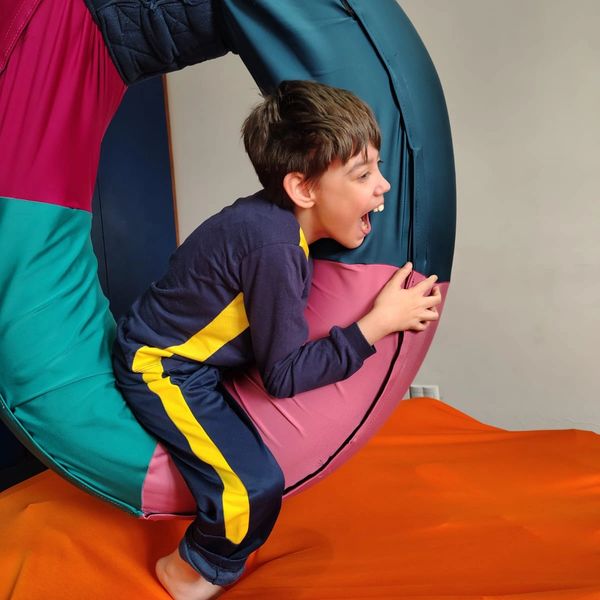 "Eu gosto de fazer os circuitos na sala de Integração Sensorial porque formam um caráter estratégico de pensar como fazer os caminhos propostos. É divertido, pois me ajuda a criar a brincadeira e aproveitar a infância."