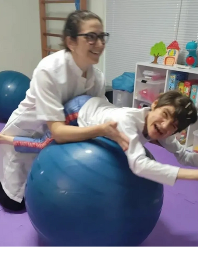 "O Bruno é atendido pela Dra. Dani a muito tempo. Através da terapia, ele está aos poucos, adquirindo sua autonomia de comer sozinho, se trocar e ir ao banheiro!"